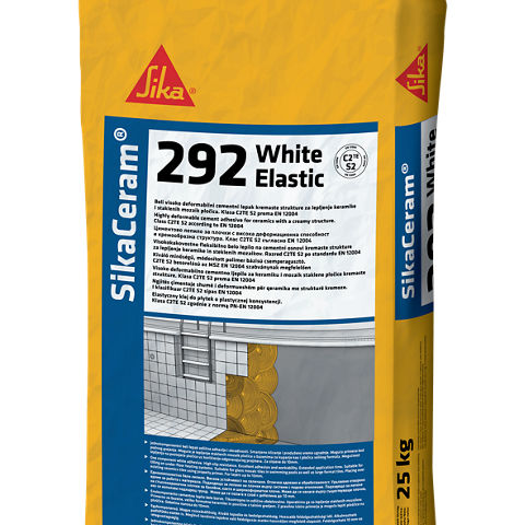 - Visok sadržaj polimera i drugih specifičnih dodataka čine SikaCeram®-292 White Elastic jako efikasnim pri lijepljenju na standardnim podlogama kao što su klasične cementne košuljice